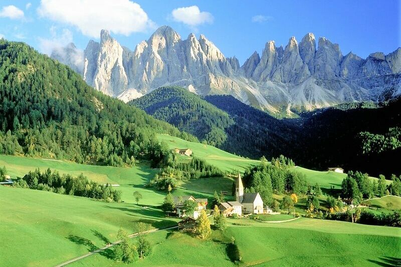 Frühstück – im Anschluss beginnt die Große Dolomiten-Rundfahrt: Bruneck – Toblach – zum Misurina-See – „Drei Zinnen“ – über den Tre-Croci-Pass nach Cortina d’ Ampezzo – Auffahrt zum Falzaregopass – abwärts nach Arraba durch die herrliche Berg welt zum Pass Pordoi über das Sellajoch (höchster, schönster und romantischster Pass mit Blick auf die Königin der Dolomiten, der Marmolada (3.342 m) – Grödner Joch nach Corvara (sehr schöne Stadt) am Ende des Gadertals – durch das enge romantische Gadertal zurück zum Hotel – Abendessen – Übernachtung